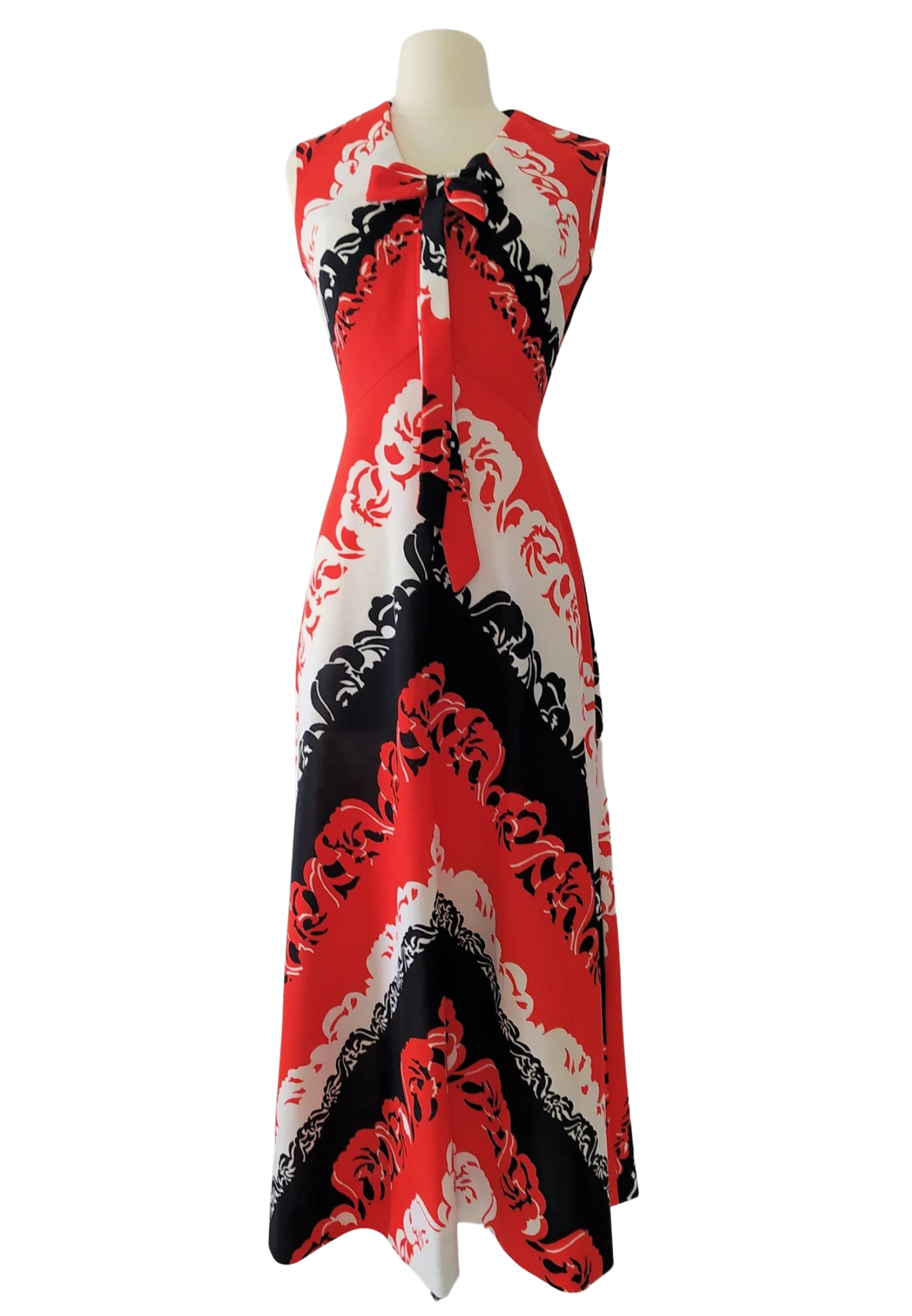 Vintage 70s Red and Black Sleeveless Fit and Flare Maxi Dress